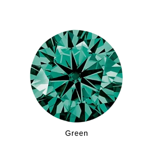 Green: Natural green diamonds are very rare, with shades from subtle light green to deep, vibrant green, usually resulting from radiation exposure during formation.