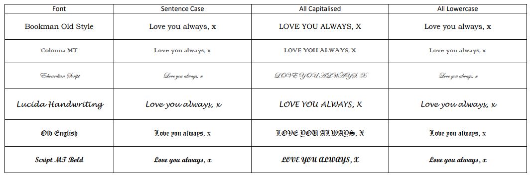 For a bold and distinctive look, consider Black Enamel Engraving. This technique enhances bespoke jewellery by filling engraved designs or text with rich black enamel. Especially suited for larger engravings or bold fonts, the contrast between the dark enamel and the metal creates a striking, eye-catching effect. It’s the perfect choice for making your design details stand out beautifully.