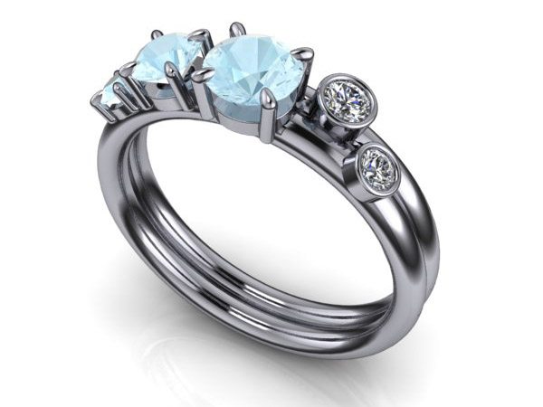 A Contemporary Engagement And Wedding Ring Set Made In Platinum Using Diamonds And Luminescent Cabochon Moonstones