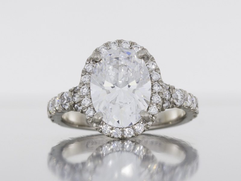 A Striking Oval Diamond Housed In A Stunning Diamond Halo