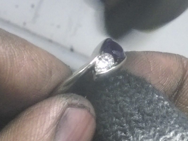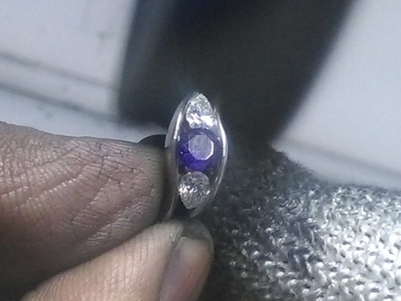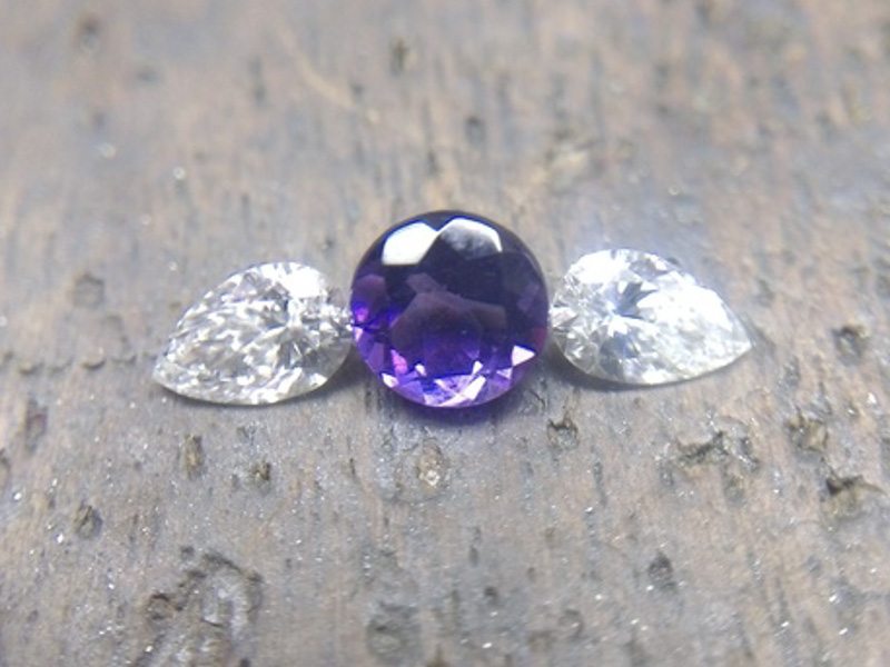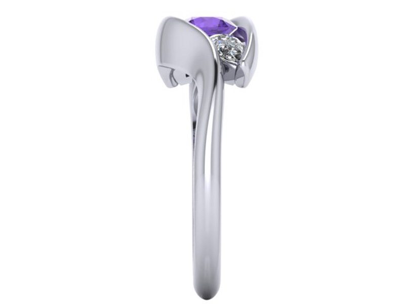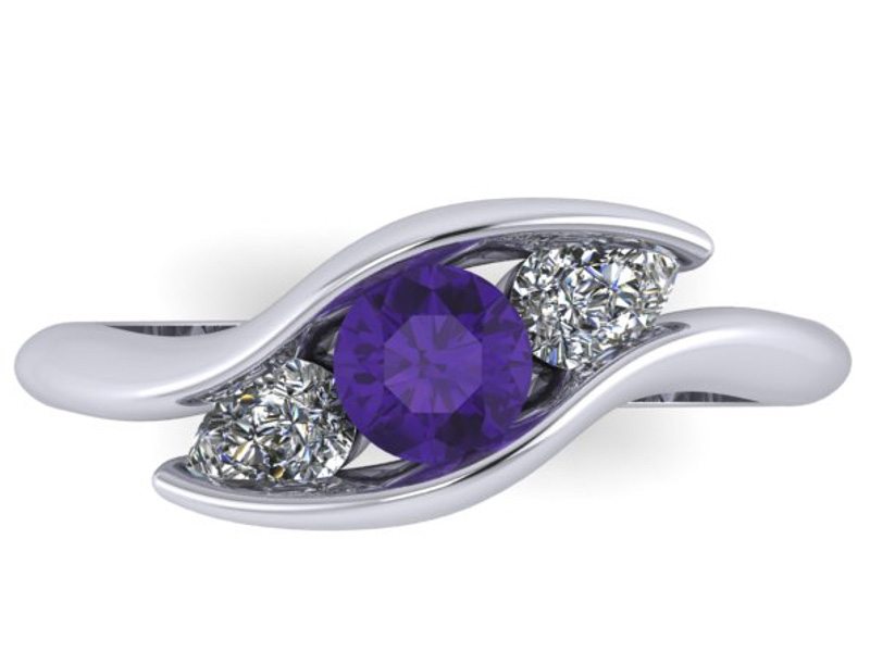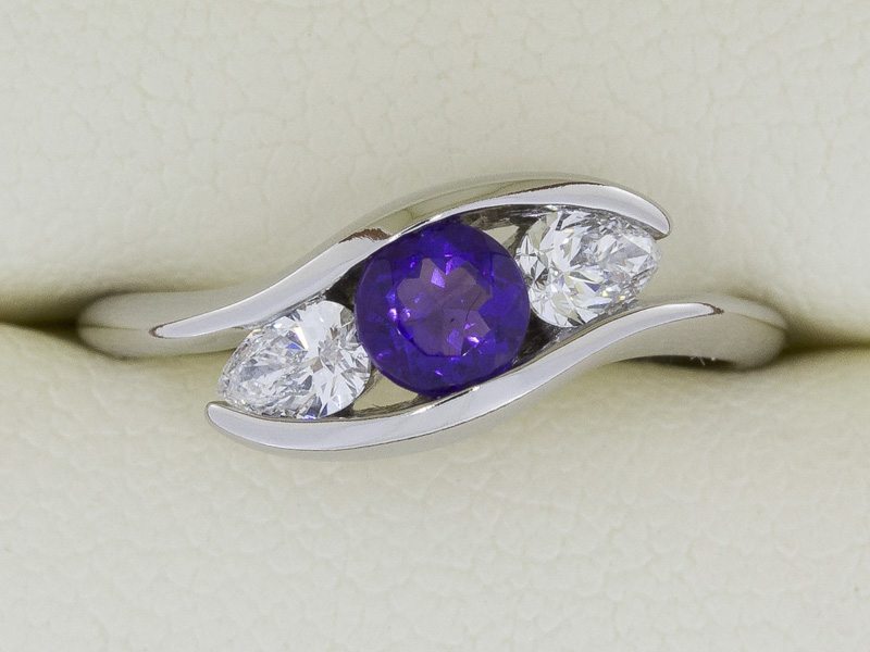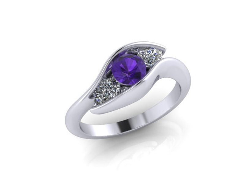 Angled Three stone amethyst and diamond engagement ring – Portfolio