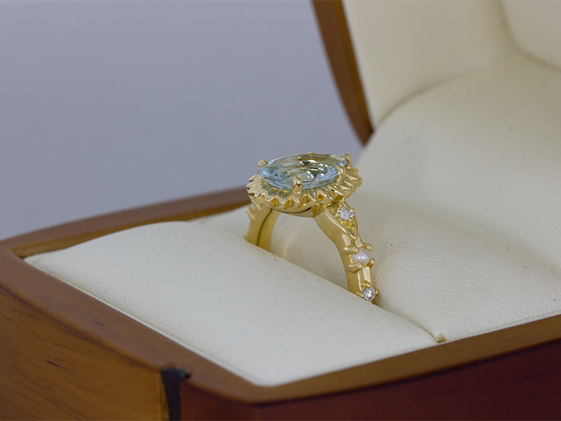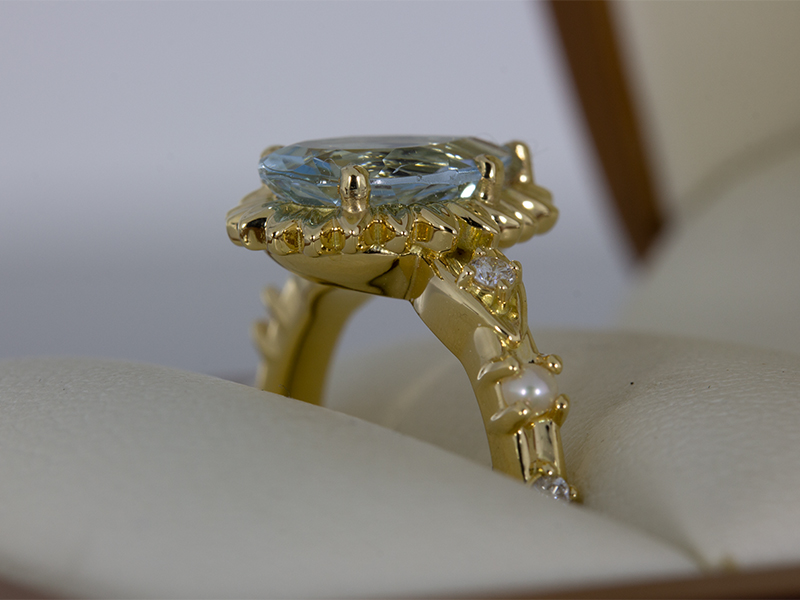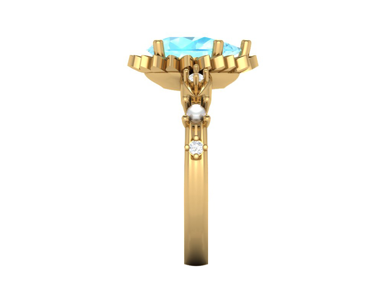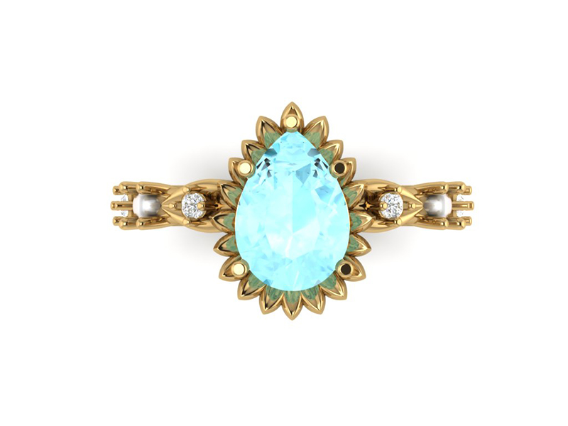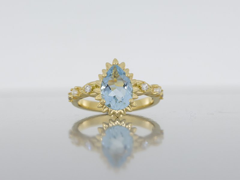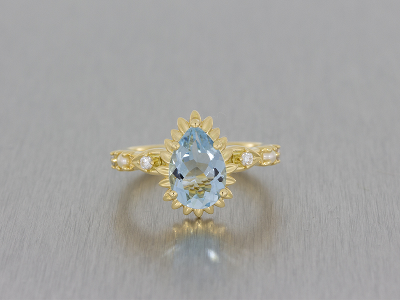 Aquamarine Pear Flower Engagement Ring