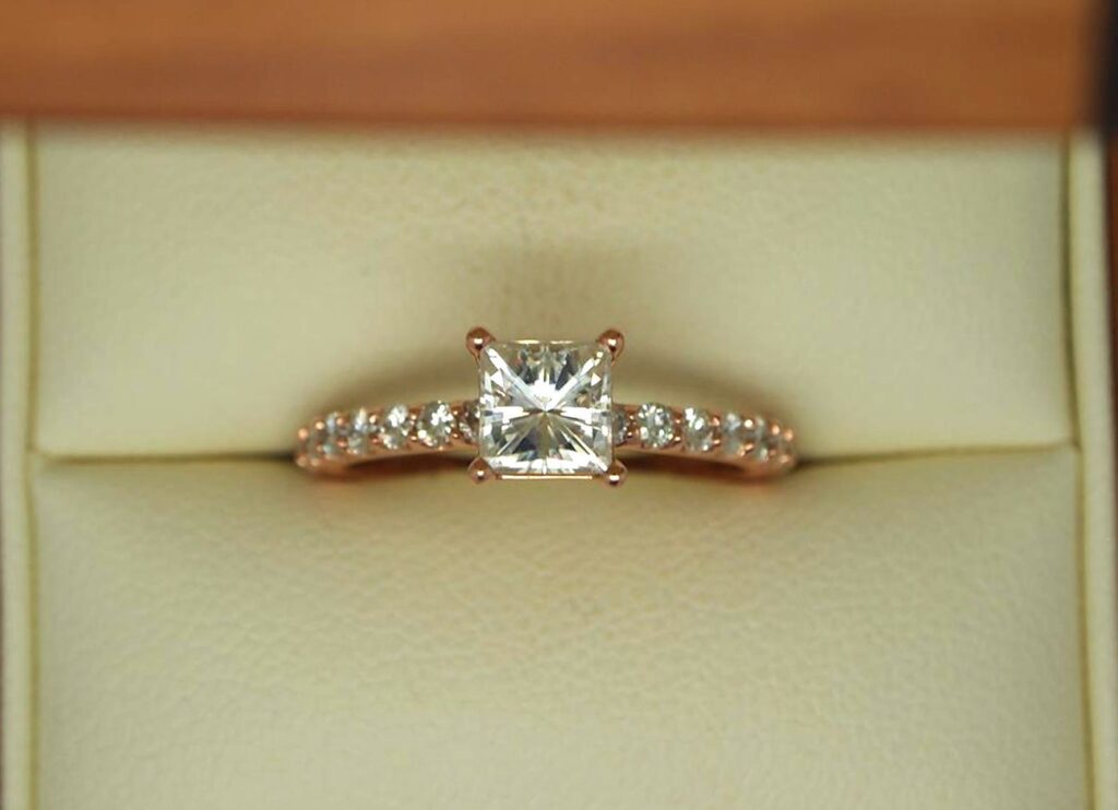 Beautiful Rose Gold and Moissanite Engagement Ring – Portfolio