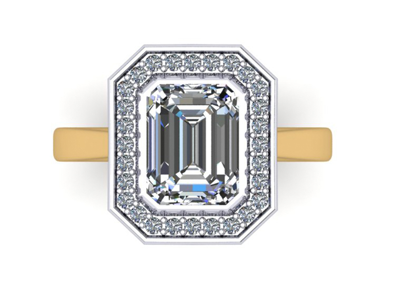 Bezel Set Emerald Halo Engagement Ring