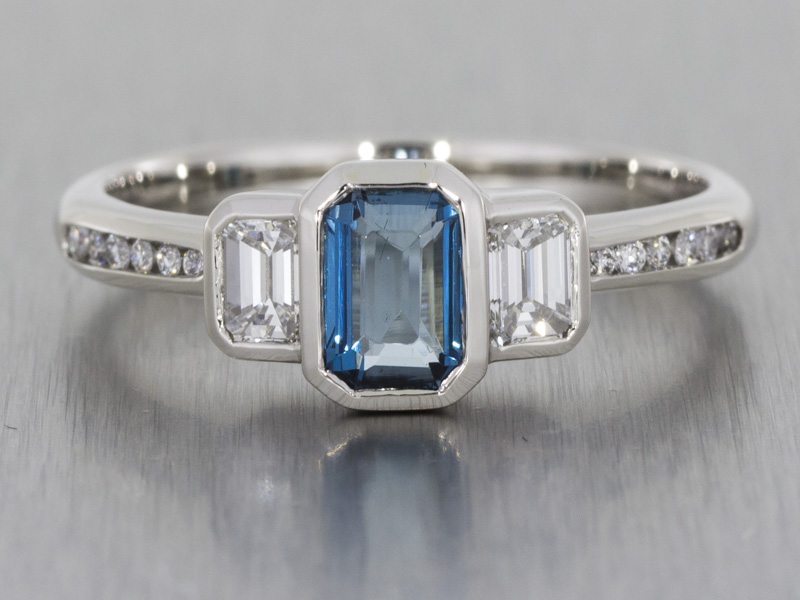 Bezel-Set, London Blue Topaz and Diamond Trilogy Ring – Portfolio
