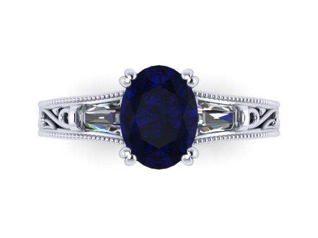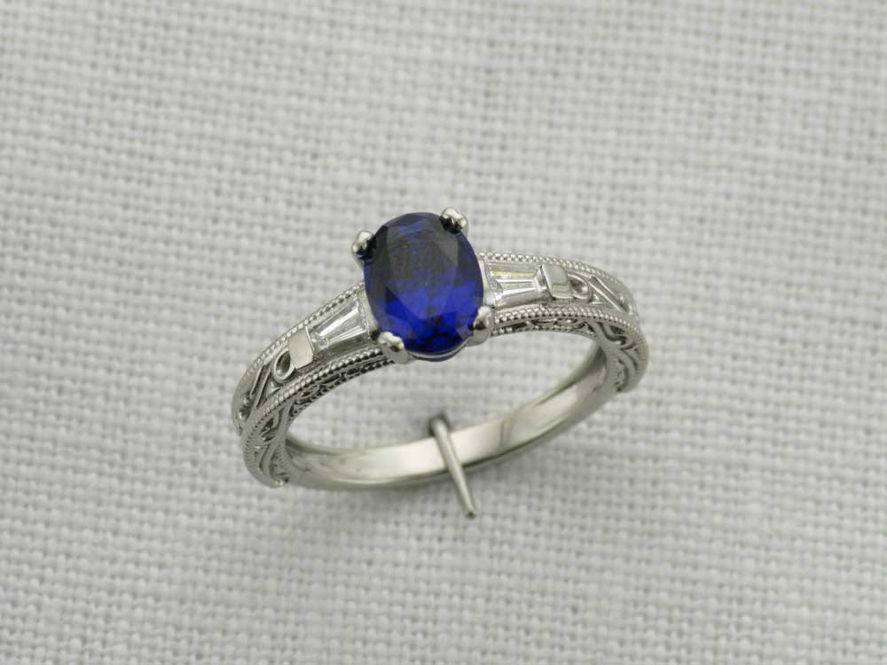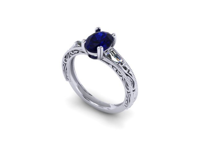 Custom filigree tapered baguette oval Sapphire ring – Portfolio