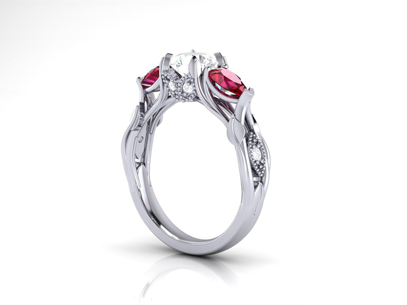 Diamond and ruby organic trilogy ring