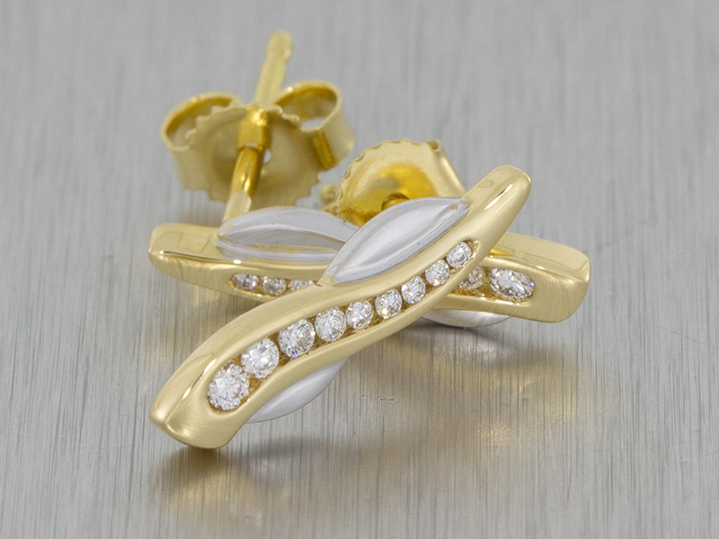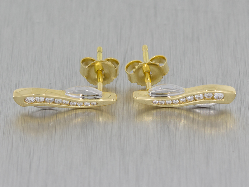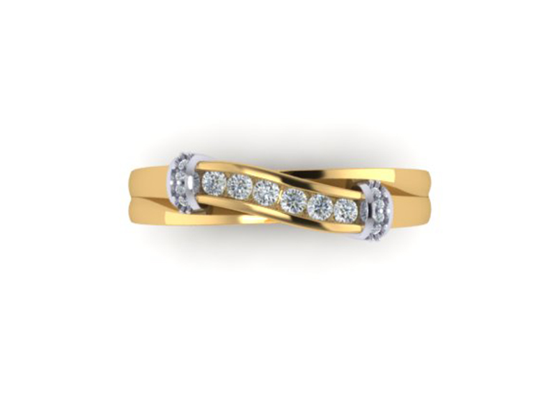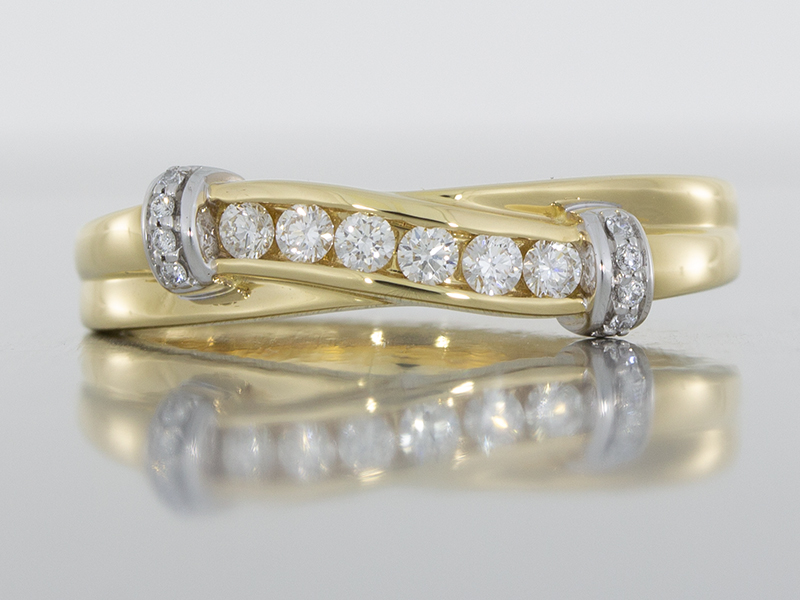 A beautifully designed anniversary ring set with diamonds and the incorporation of two colour metal enables these beautiful pieces to be worn on any occasion. Our client was originally looking for an anniversary ring that was understated to compliment his wife's other rings which I think we have captured perfectly. There was even enough room in the budget for a matching pair of earrings. We took the main design element of the twist and reduced the size to create an everyday earring