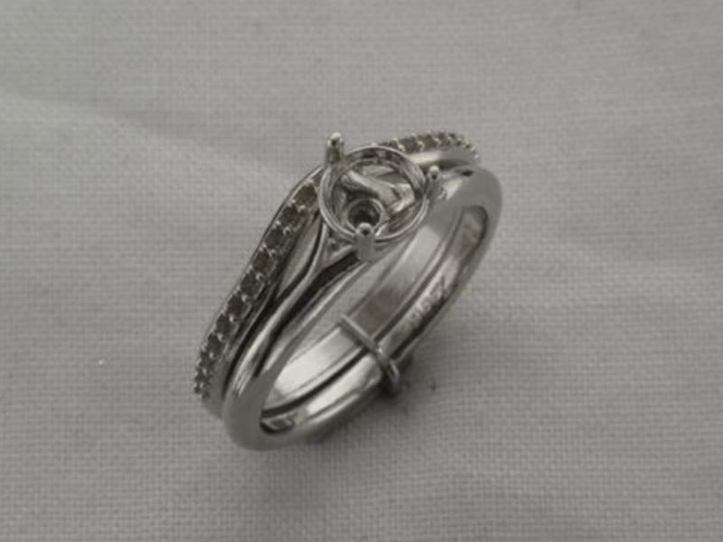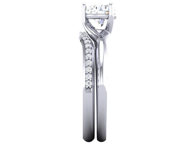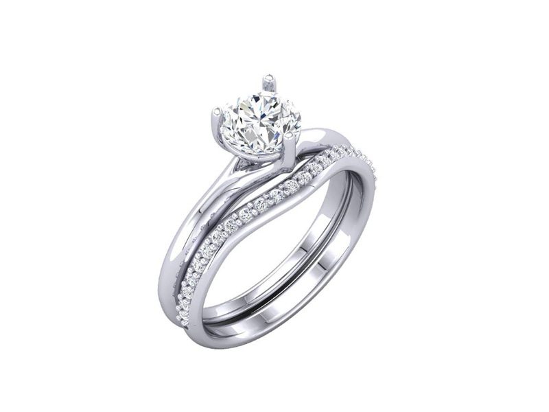 Elegant Three Claw Solitaire With Diamond Set Contoured Band