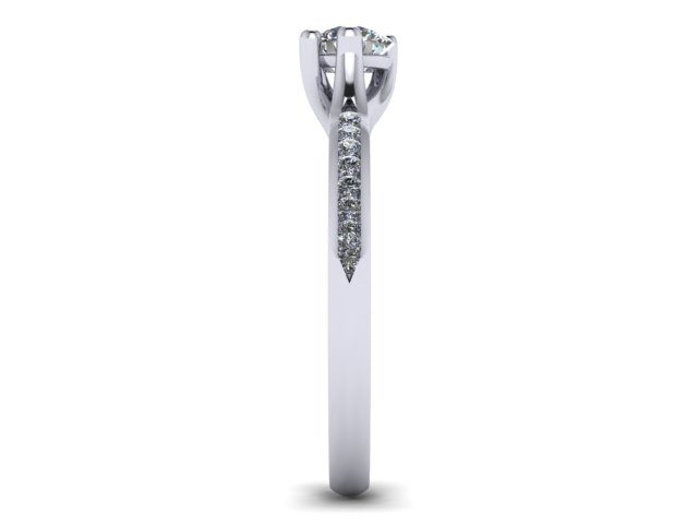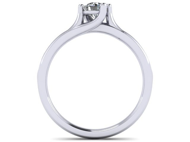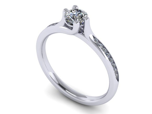 Our client was looking for an unusual yet delicate design and was rather fond of the North, East, South and West claw setting but thought it looked a little 'blunt'. Therefore we advised and adapted the idea somewhat, to produce his dream ring incorporating the twist and subtle design elements he desired. Inspired by the focal 'twist' design that our client had expressed a preference for, we were able to produce this beautiful elegant design featuring a 0.33ct, F, SI1 modern round brilliant cut diamond centre stone. The platinum band encased channel set shoulders lead the eye up to the centre diamond. The shoulders have been set half way down the band with an elongated V channel which is very soft. From the through view were are able to show more of the diamond by rotating the claw round further giving this asymmetric design. Our client was very keen to have a beautiful, classic and understated ring which this ring encapsulates.
