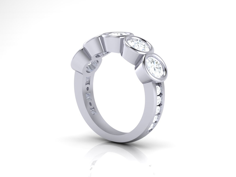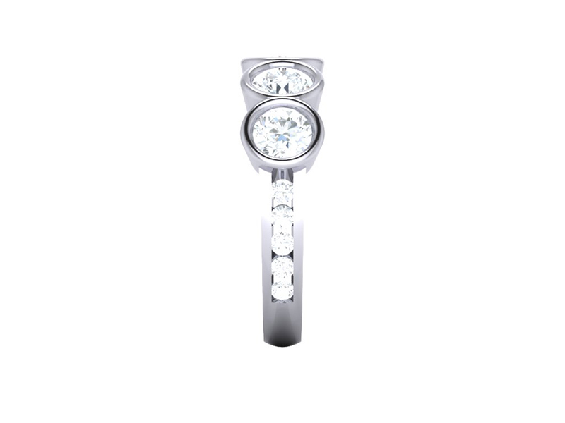 Our client sought us out to create this beautiful, custom designed proposal ring. Featuring contemporary bezel setting from the top view and channel setting in the shank the design is modern and elegant and just perfect for a romantic proposal.