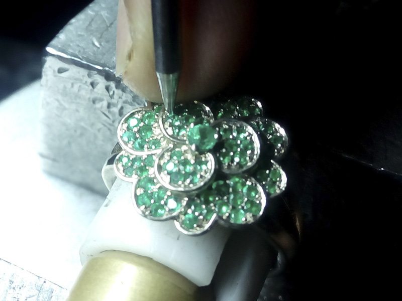 Jewelled Emerald Green Carnation Cocktail Ring – Portfolio