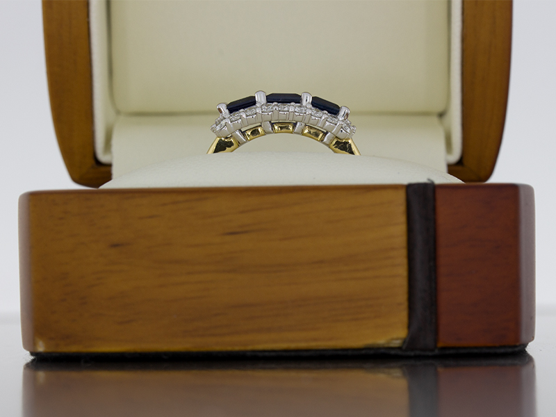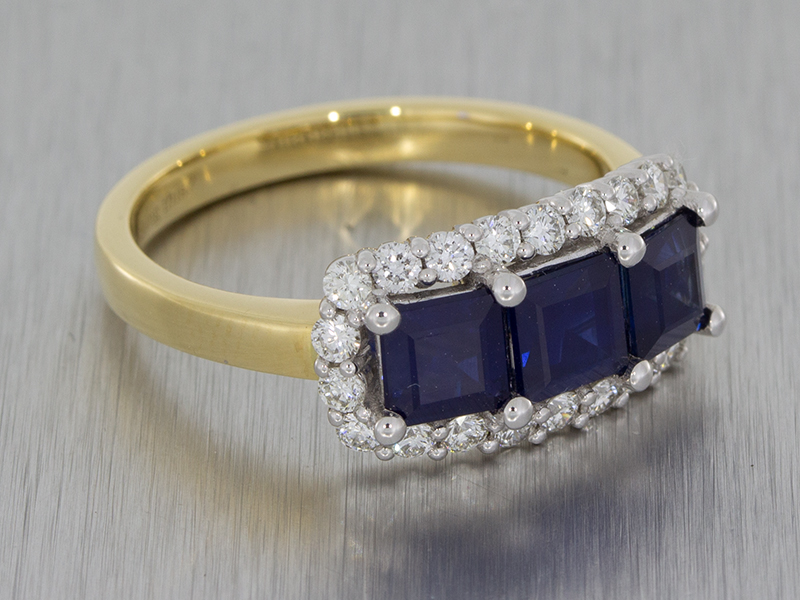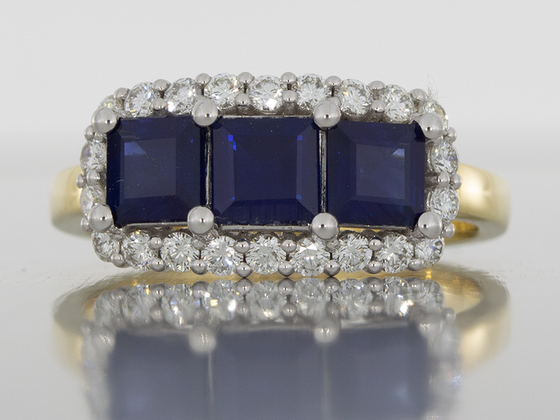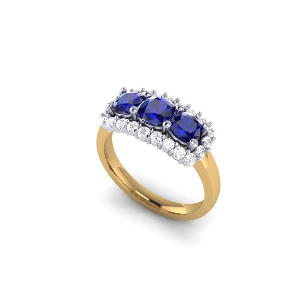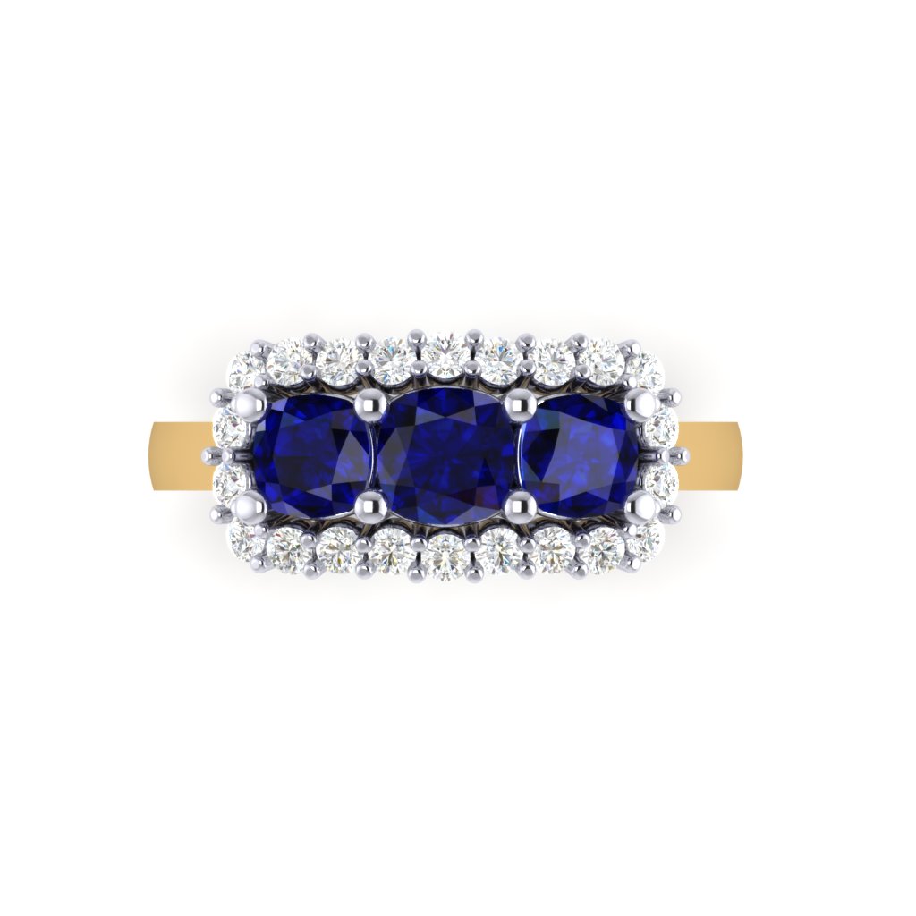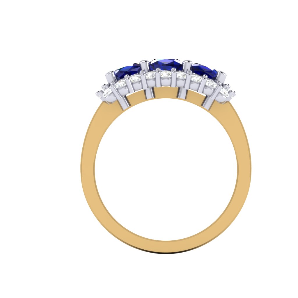 Mixed Metal Sapphire Trilogy Ring with a Cluster of Diamonds