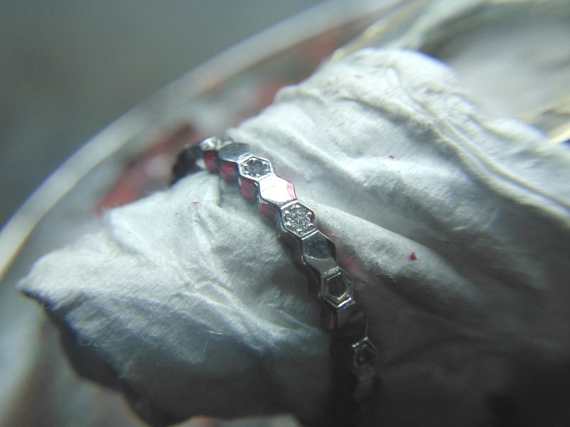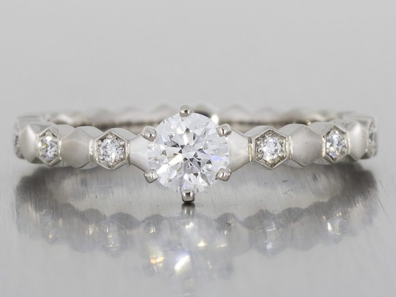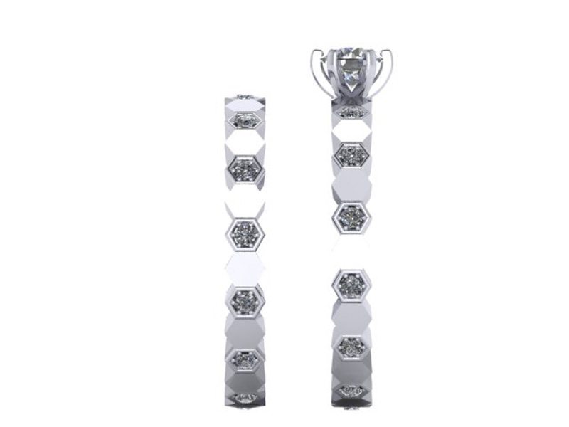 Our 'Ring of the Week' this week is this geometric bridal set.  The ring was cast in platinum for its supreme quality and then crafted to produce a geometric hexagonal design. The modern, brilliant round cut centre diamond is set in a six claw mount, displaying its full beauty. The hexagonal faces also house flush set and bezel set accent diamonds, which creates additional sparkle and glamour. A matching wedding band was also made to compliment the engagement ring, making a one of a kind bridal set, unique to our client.