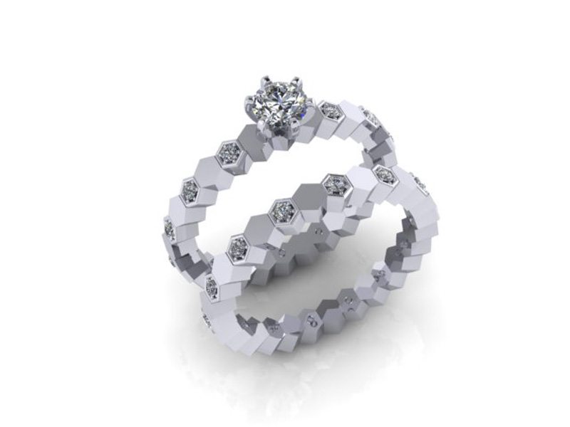 Platinum And Diamond Geometric Bridal Ring Set – Portfolio