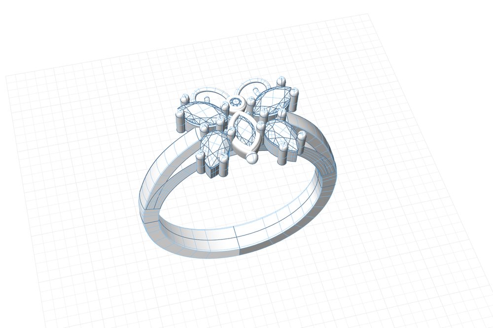For this week's 'Ring of the Week' project, our client came to us with a truly bespoke engagement ring request. This platinum multi-stone butterfly was inspired by another ring featured on our website. The body of the butterfly is made from bezel set rubies. The four claw set marquise and pear shaped white diamonds create the butterfly wings. The delicate antenna have been meticulously designed and created to join the setting of the wings so there are no snag points. These are all set upon a cathedral shank, which allows for a wedding band to sit flush against the ring shank. This creates the opportunity for the butterfly to 'sit' on top of the wedding band.