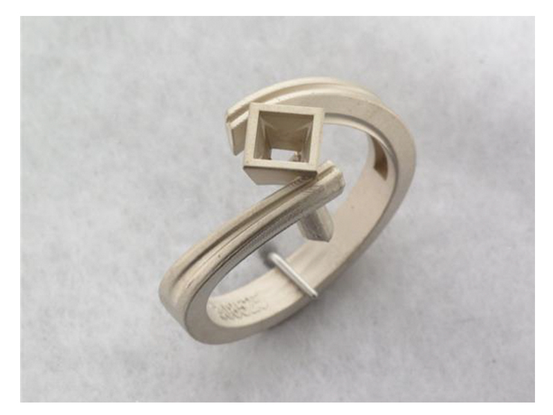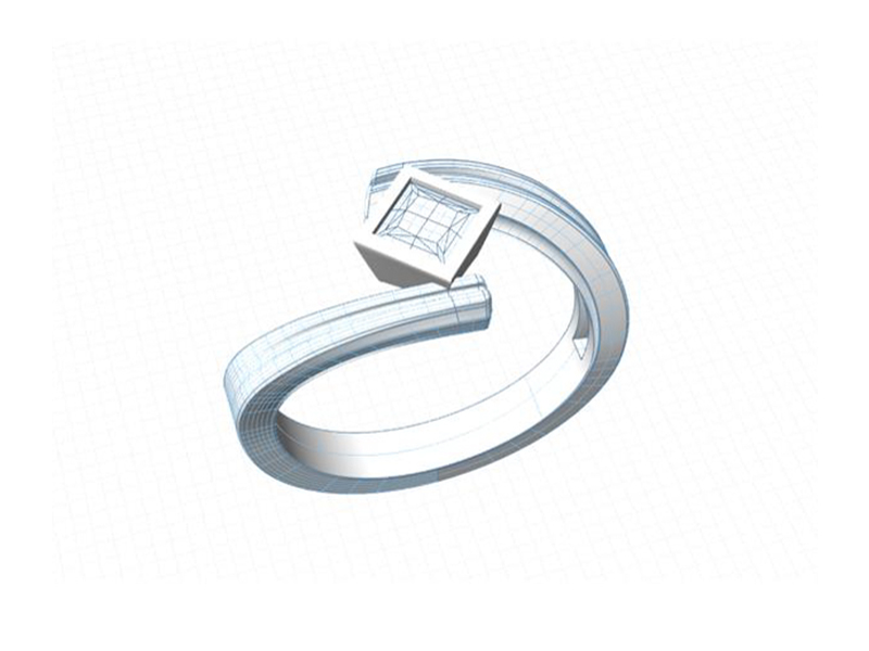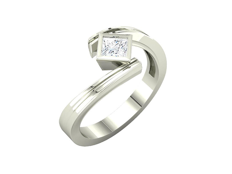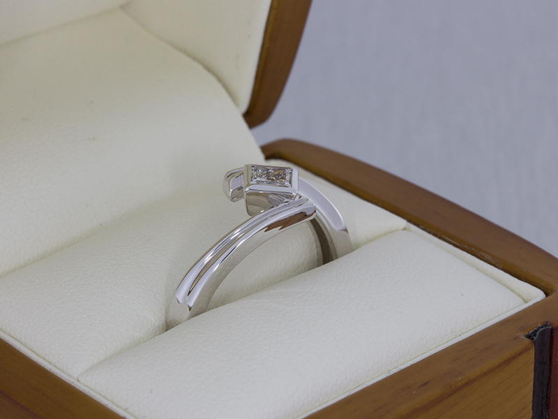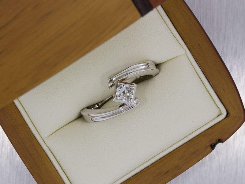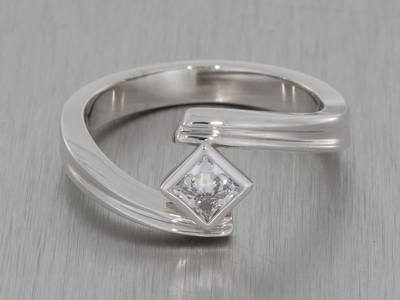 Platinum Princess cut ring set in a groved Bypass shank