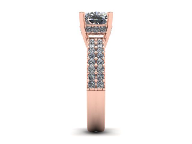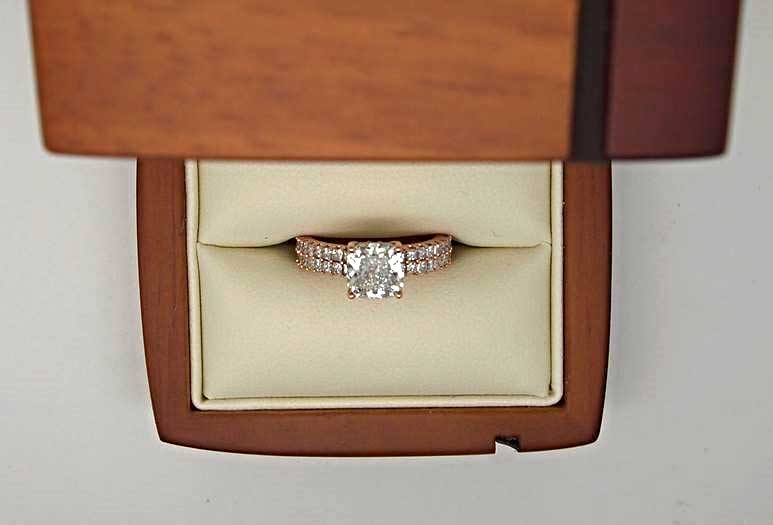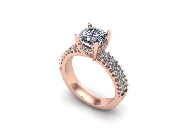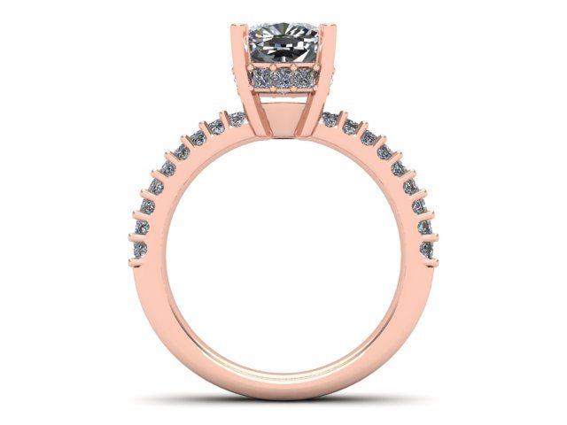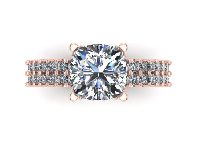 Our featured 'Ring of the Week' project this week was created for our client who wanted a ring for his partner's 50th birthday. This enchanting Rose Gold ring is set with exactly 50 diamonds. The band consists of two rows of princess cut diamonds to represent both an engagement band and wedding band. These then lead the eye up toward a simple, but elegant four claw set square cushion cut diamond. The upper gallery rail is also adorned in diamonds to create that extra sparkle and depth. The contrast between the white diamonds and Rose Gold strikes a perfect balance, giving this ring a romantic yet modern twist.