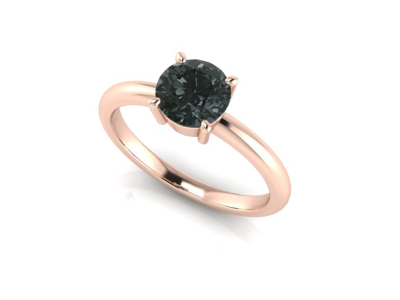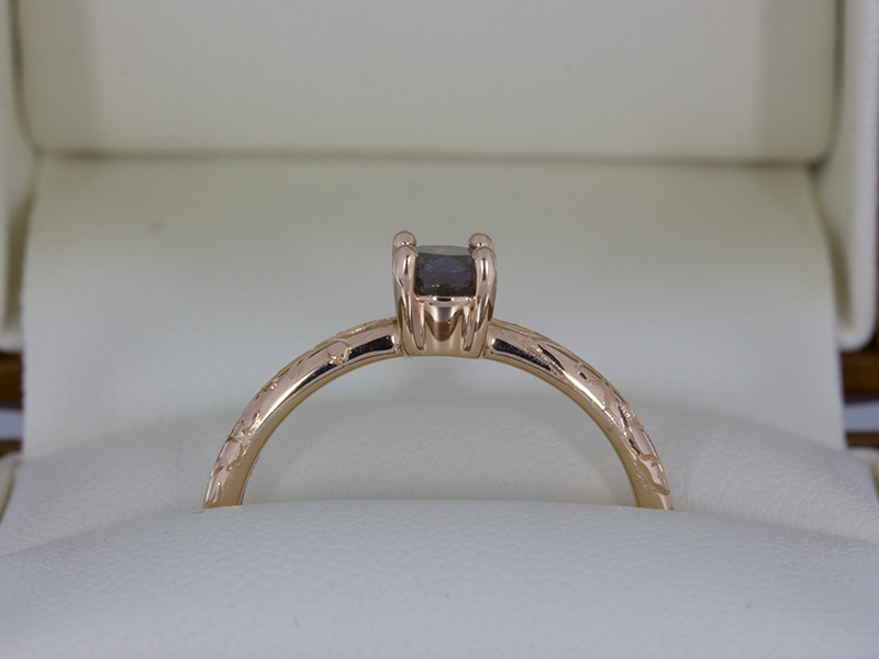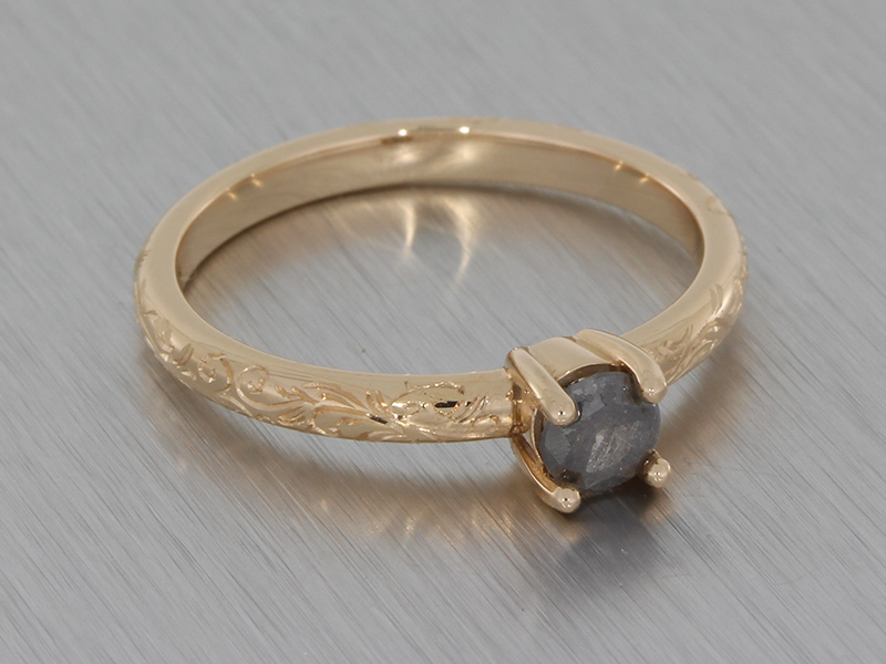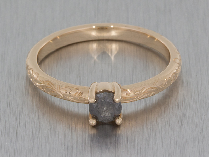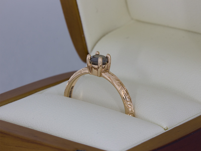 Rose Gold Grey Diamond Ring Delicately Engraved with Floral Detailing