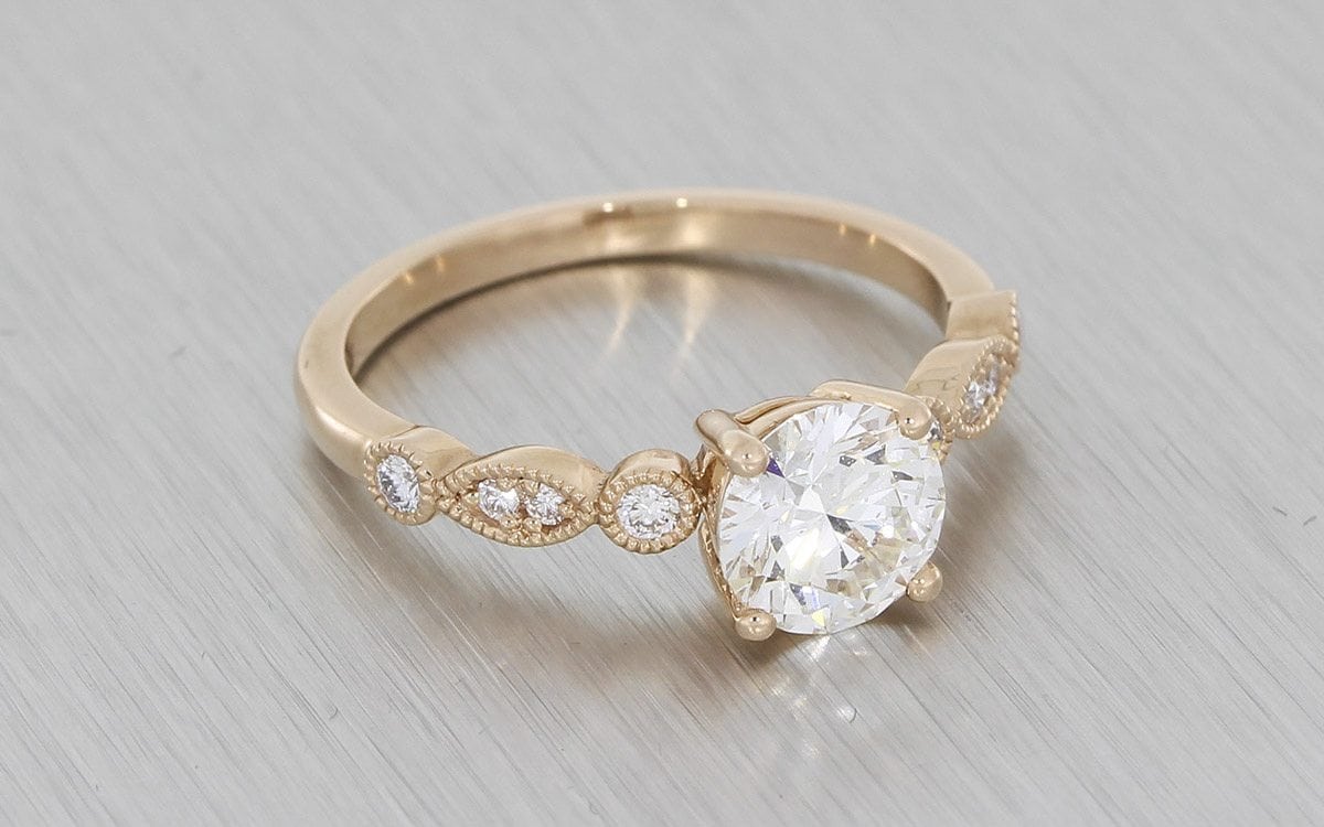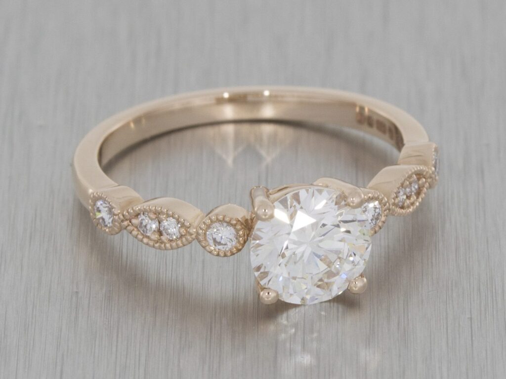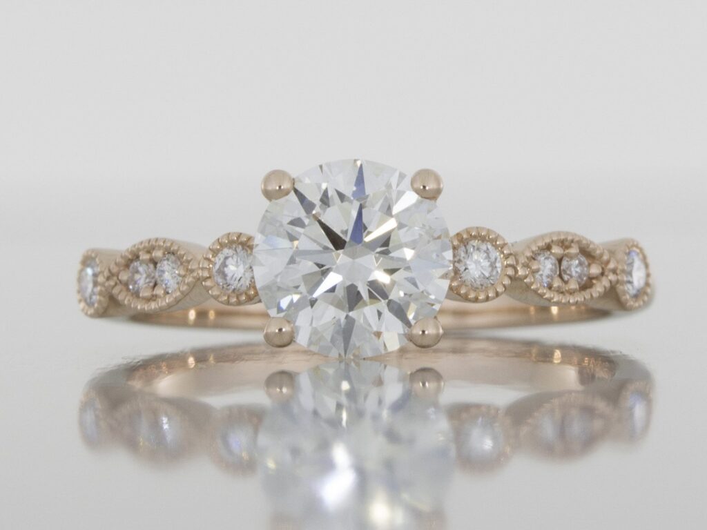 Rose Gold Vintage Engagement Ring with Milgrain Shoulders – Portfolio