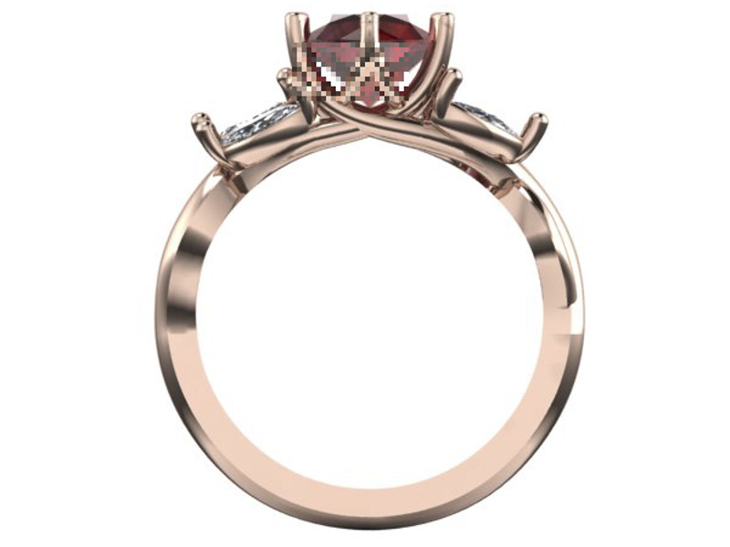 Round Moissanite And Marquise Shape Garnet Ring With An Alluring Twisted Band