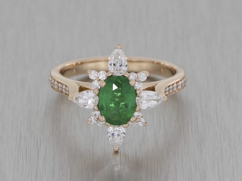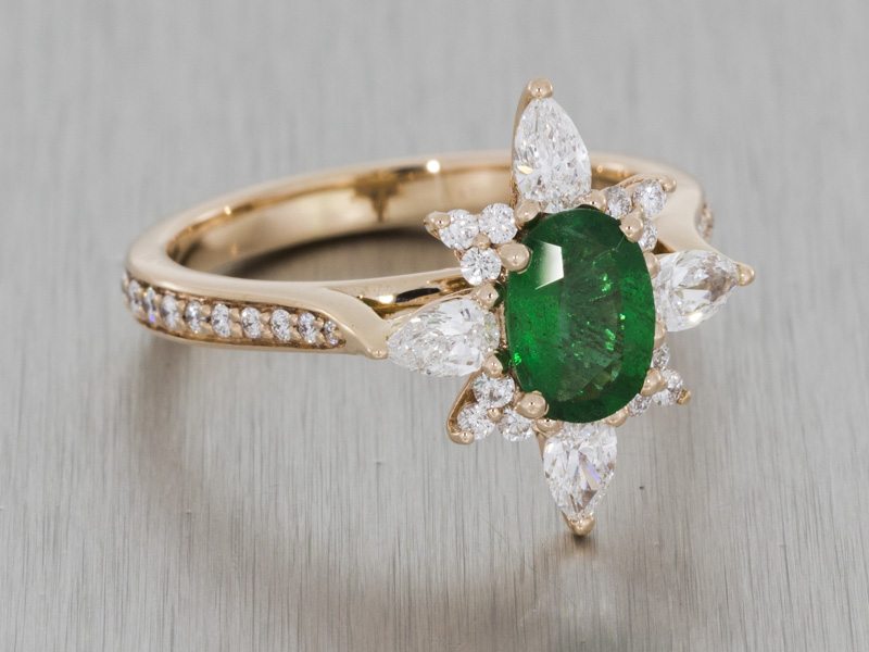 Stunning Emerald Diamond Snowflake Ballerina Ring
