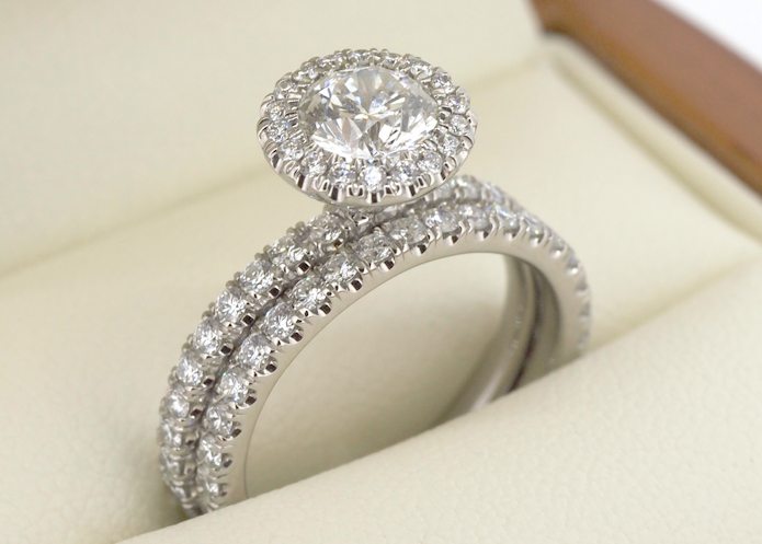 Stunning Large Diamond Halo Platinum Ring Set – Portfolio