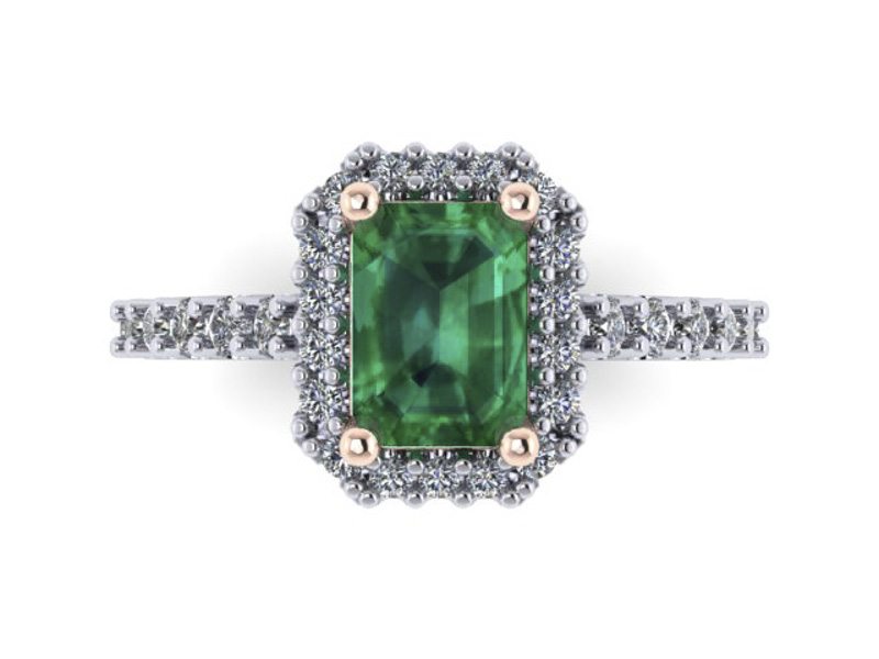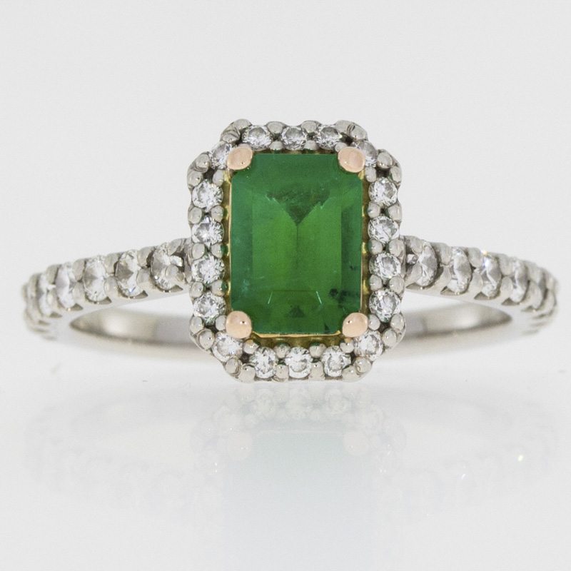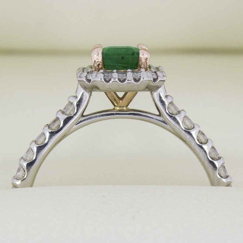 Vintage Emerald Platinum and Rose Gold Halo Ring – Portfolio