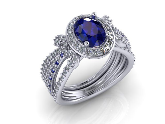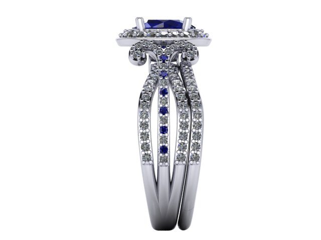 Vintage Sapphire Bridal Band Set with Diamond Halo and Hidden Ruby – Portfolio