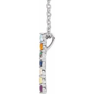 14K White Natural Multi-Gemstone & .03 CT Natural Diamond Cross 16-18″ Necklace
