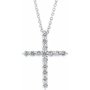 Platinum 3/4 CTW Natural Diamond Cross 16-18″ Necklace