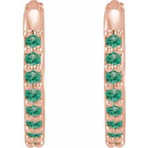 14K Rose Lab-Grown Emerald Hinged 12.5 mm Hoop Earrings