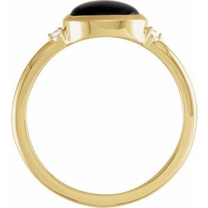 14K Yellow 8×6 mm Round Natural Black Onyx & .03 CTW Natural Diamond Ring