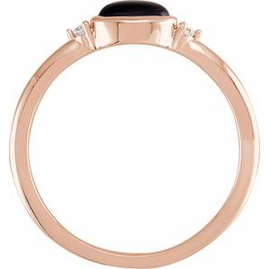14K Rose 6×4 mm Round Natural Black Onyx & .03 CTW Natural Diamond Ring