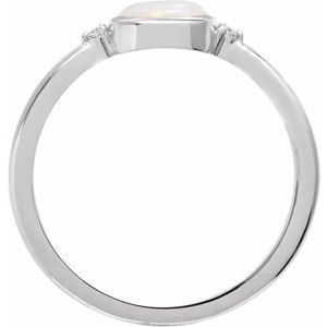 Sterling Silver Natural White Opal & .03 CTW Natural Diamond Ring