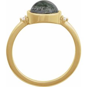 14K Yellow Natural Moss Agate & .03 CTW Natural Diamond Ring