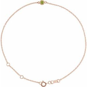 14K Rose Natural Peridot Bezel-Set Solitaire 6 1/2-7 1/2″ Bracelet
