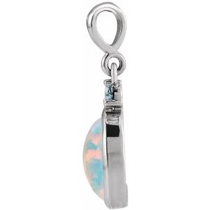 Sterling Silver 5×3 mm Lab-Grown White Opal & Natural London Blue Topaz Pendant