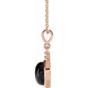 14K Rose 8 mm Natural Black Onyx & .03 CT Natural Diamond Cabochon 16-18″ Necklace