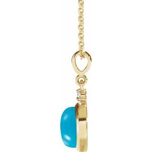 14K Yellow 6 mm Natural Turquoise & .03 CT Natural Diamond Cabochon 16-18″ Necklace