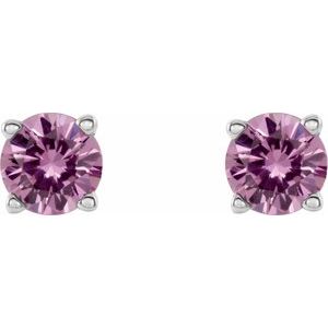 14K White 4 mm Natural Pink Sapphire Stud Earrings
