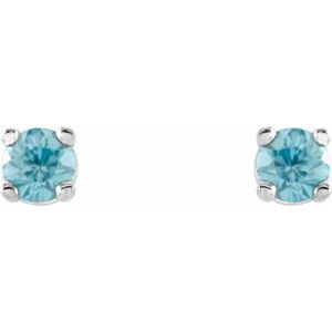 14K White 2.5 mm Natural Blue Zircon Stud Earrings
