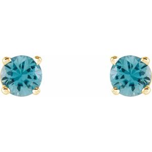 14K Yellow 4 mm Natural Blue Zircon Stud Earrings