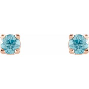 14K Rose 2.5 mm Natural Blue Zircon Stud Earrings