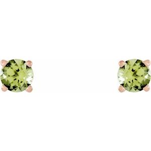 14K Rose 4 mm Natural Peridot Stud Earrings