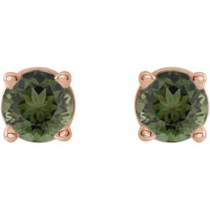 14K Rose 3 mm Natural Green Tourmaline Stud Earrings