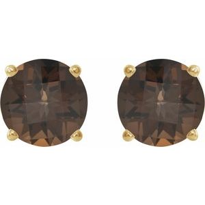 14K Yellow 8 mm Natural Smoky Quartz Stud Earrings