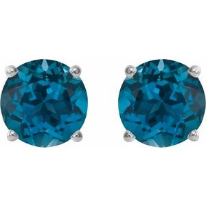 Platinum 8 mm Natural London Blue Topaz Stud Earrings