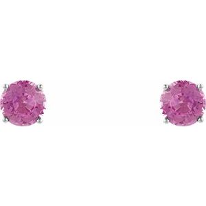 14K White 5 mm Natural Pink Sapphire Stud Earrings