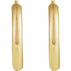 14K Yellow Round Tube 35 mm Hoop Earrings